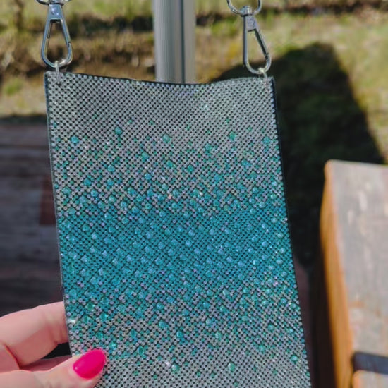 7" x 5" cross body with a 51" strap. This adjustable phone purse ensures comfort on the go enable the use of both hands. It's the ideal accessory for running errands, concerts, a night out, travelling, or for every single day use. This purse has fierce sparkle! Fashion meets function with this ideal phone purse! It has room for lip gloss and cards too!