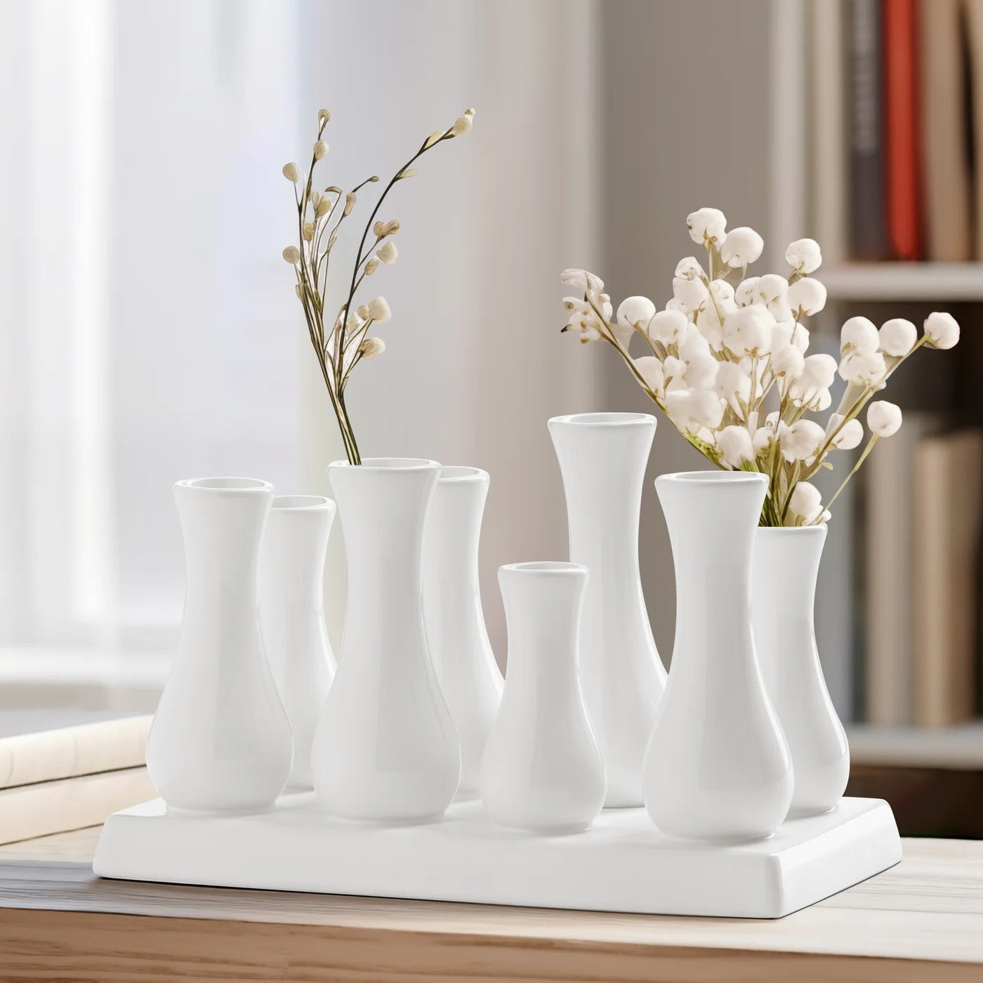 Multi Tube Rectangle White Ceramic Vase